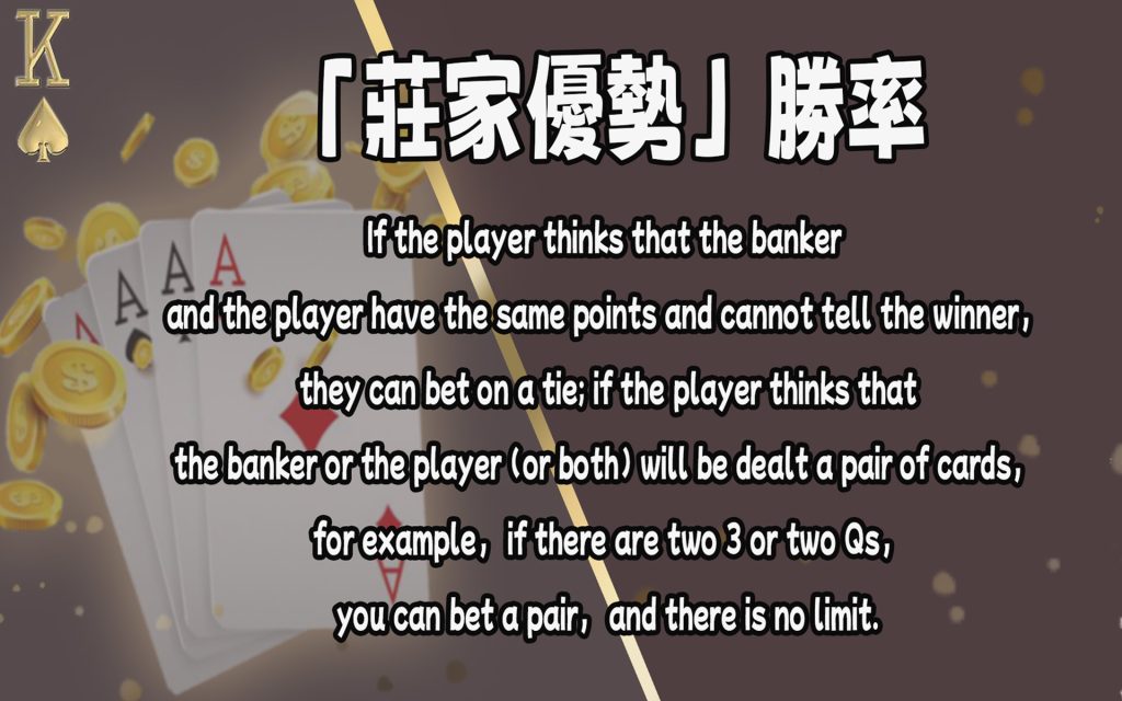 這樣會給莊家帶來很大的壓力,認為每個玩家手上的牌點數都比較高。 如果莊家也抱持尷尬點,這種情況只能逼莊家索取牌,這個隱藏的技巧就是將風險轉移給銀行家,輸贏是由上帝決定的,這取決於誰是幸運的,若莊家下注,則玩家獲勝。